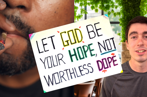Josiah and friends preach outside a marijuana dispensary, armed with signs and tracts.